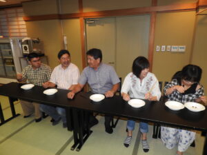 その豆を別皿に移動して、終わったら次の人にリレーして行き、