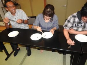 早く終わったチームが勝ちです。チームで話合って箸を決めます。